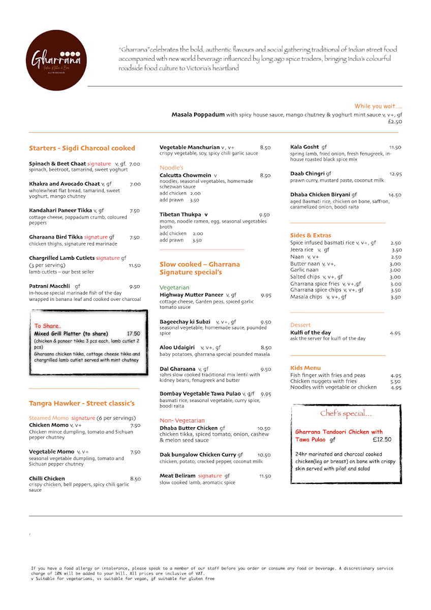 Welcome to Gharrana - Indian Kitchen and Bar Altrincham, a culinary haven nestled in the heart of Altrincham, UK. Their menu is a delightful fusion of traditional Indian flavors and contemporary flair, crafted to tantalize your taste buds.